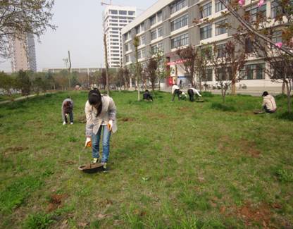 这几天,校园里经常看到这样的场景:一些同学手拿竹筐、头戴草帽,在逸夫楼前、主教两侧、科技广场周围的草地上捡些什么。他们奇异的举动引来很多人的关注,大家都在好奇:“他们是在挖土豆还是在捡蘑菇?”上前仔细一看才知道,同学们在“劳动”。捡石砾,拔杂草,三五个同学围在一起相互打趣道:“这还真有点当年上山下乡的感觉!”