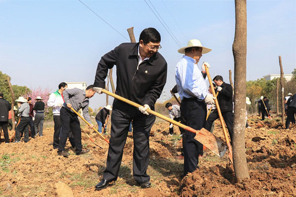 学校中层单位主要负责人、学生代表200多人一起参加了春季义务植树活动。