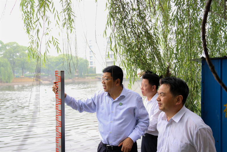 校领导一行冒雨来到北区排闸(站)、防汛仓库、南区红烛湖排闸(站)、长河堤防以及校园重点低洼区域进行了现场检查,听取了学校防汛工作的情况汇报。