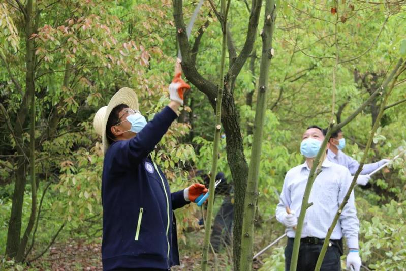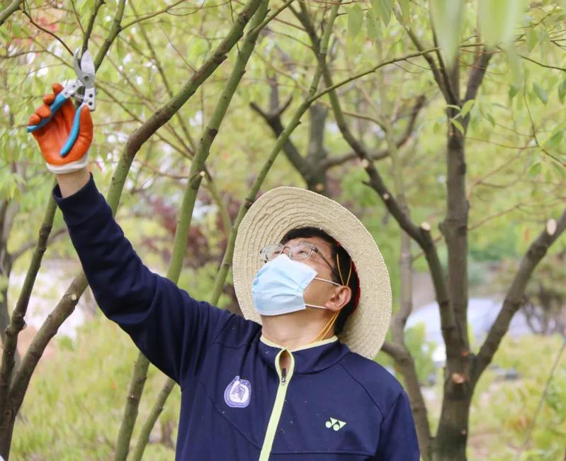 在这次志愿活动中,生物与农业资源学院方元平教授为大家做技术指导,王立兵亲力亲为,时而修剪枯枝、弱枝和闲枝,时而修剪成行道树或景观树。