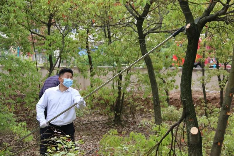 春暖花开,正是修剪树枝的好时节!为了贯彻落实黄冈市关于创建文明城市和卫生城市的要求,4月19日下午,校党委书记王立兵和必赢集团网站志愿者对“明珠山”旁的樟树林修剪一新。