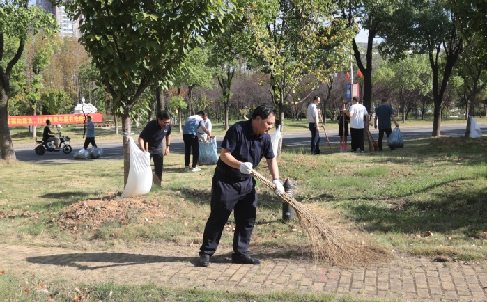 在后勤保障与基本建设处的协调组织下,各单位合理分工,密切合作,迅速投入活动。大家热情高涨,手持扫帚、垃圾袋、铁撬等工具对校园道路、绿化带等场地的杂物、石块、杂草进行清扫。经过大家的努力,校园更加明亮整洁,每一个角落都焕发出新的生机与活力。