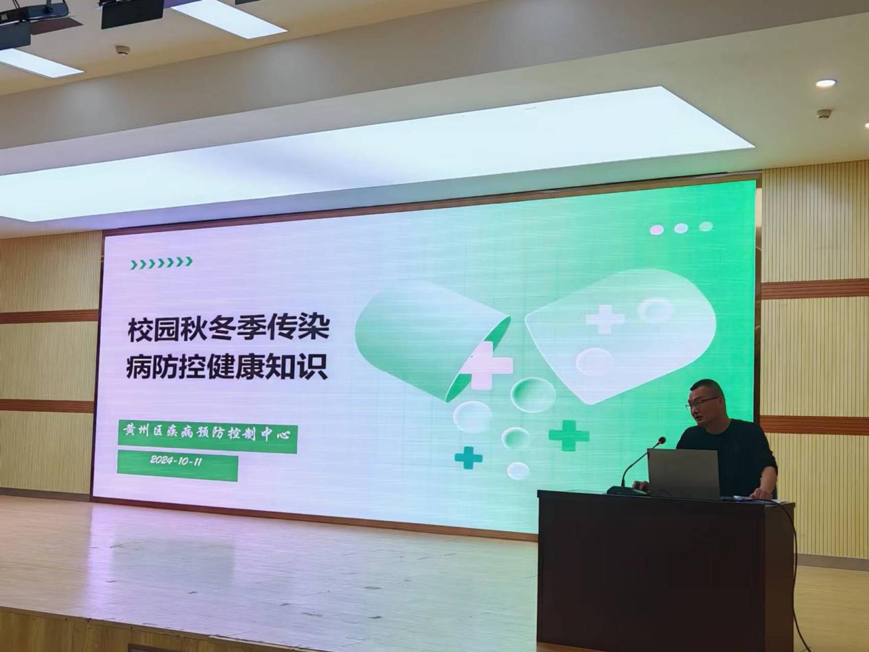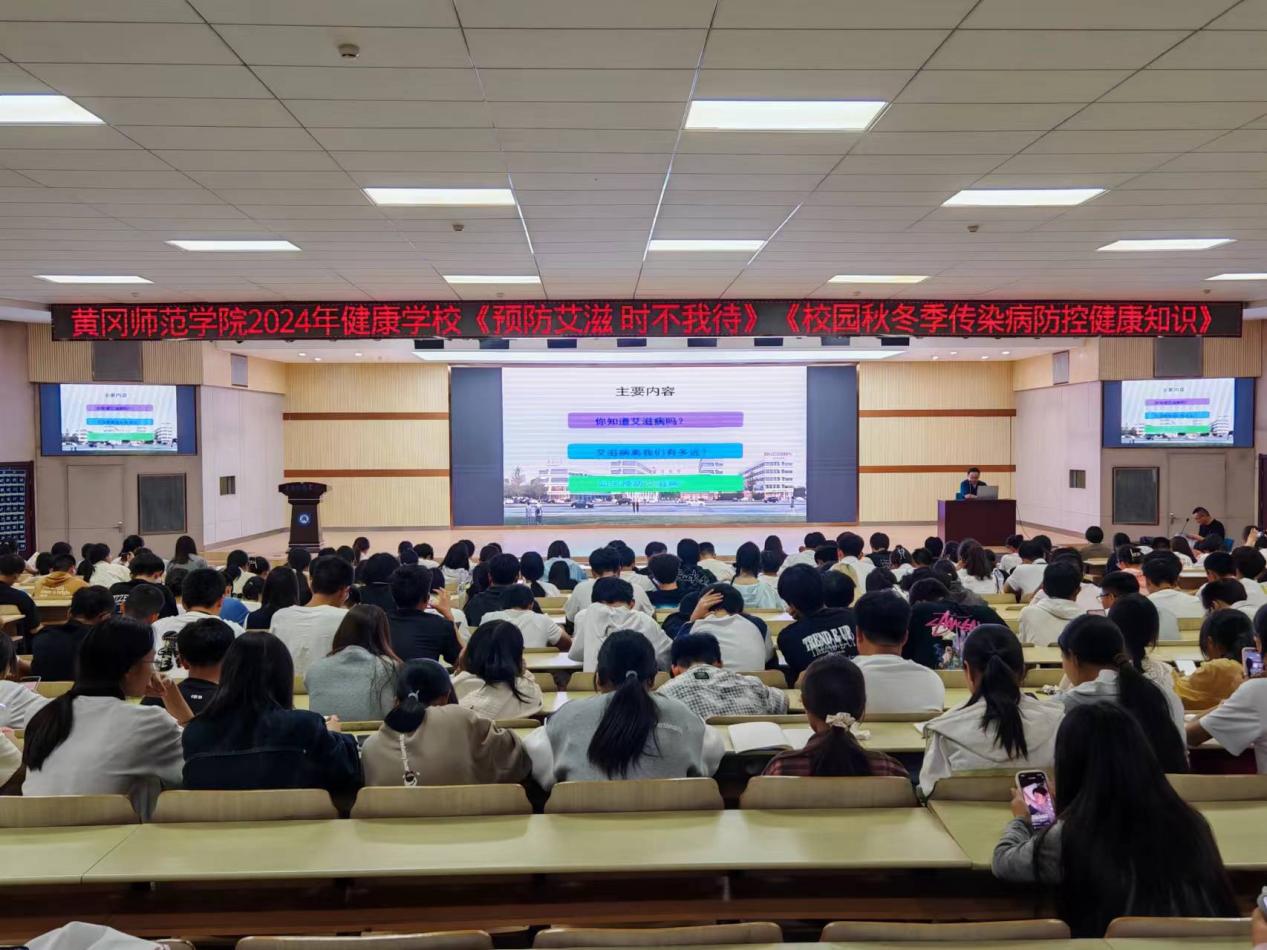 为助力必赢集团网站全国健康学校建设,丰富大学生艾滋病及秋冬季传染病预防与控制、更好的了解艾滋病及传染病的健康知识,保障学生身心健康,10月11日,学校在北校区报告厅举办了艾滋及传染病预防健康知识讲座,黄冈市疾控中心艾防科科长黄涛、黄州区疾病预防控制中心性病艾滋病防治科科长倪丰受邀参加此次活动。全校师生代表到场学习。